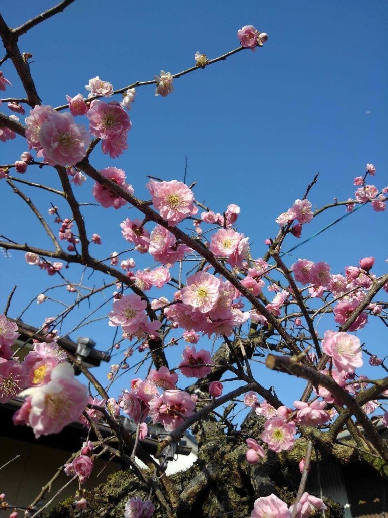最近は帰省できていないんですが、春に紅梅がすごく綺麗に咲いていました。写真見ます?