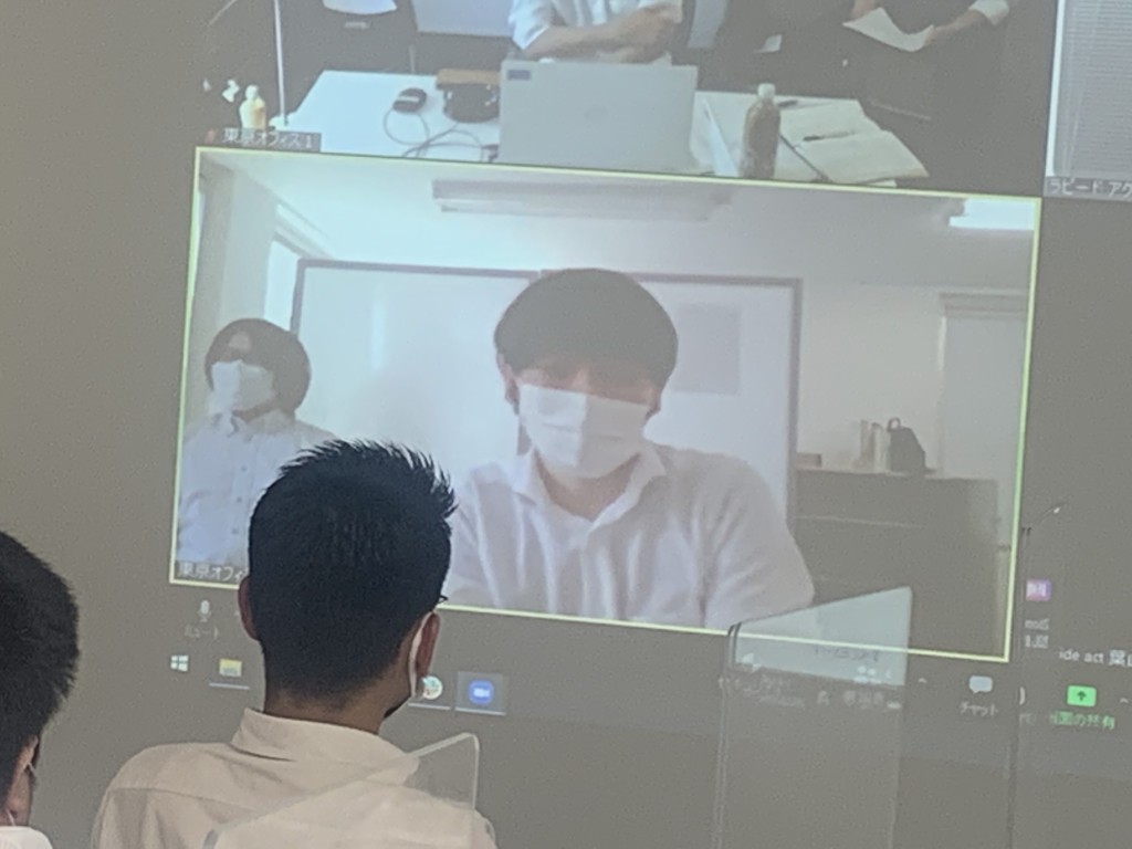 事務所に集まり、福岡と東京はzoomで繋いで共有しあいます。