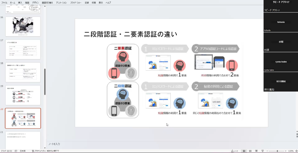 資料を画面共有しながら、講師がテーマに沿って説明をしていきます。