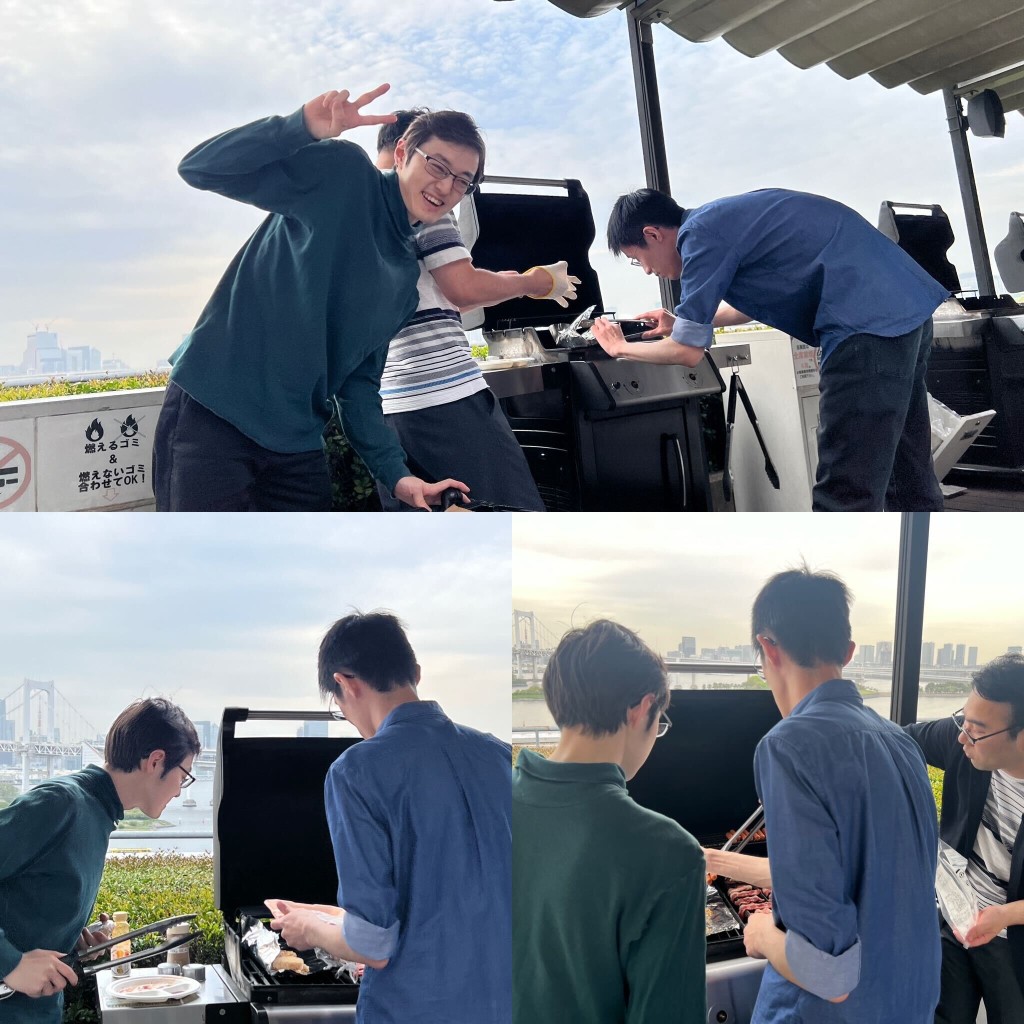 東京に来たばかりのメンバーの歓迎も兼ね、お台場の美しい景色を楽しみながらBBQを開催しました。