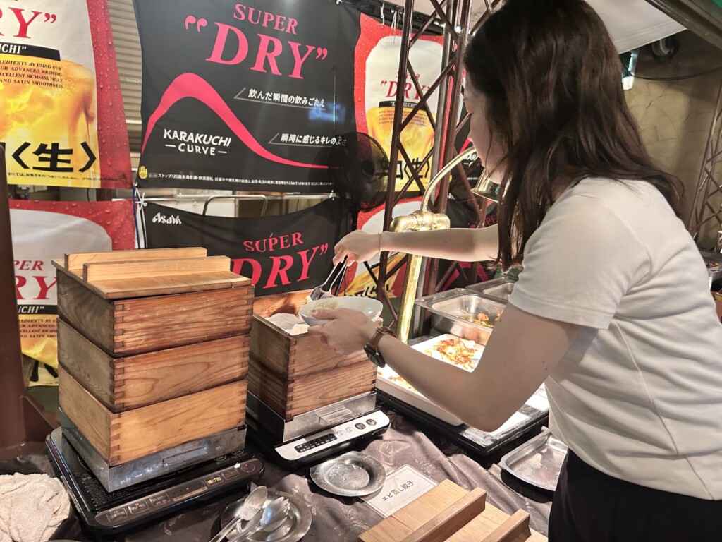 天神スカイビアガーデンはビュッフェスタイルになっており、まずは美味しそうな料理と飲み物を取りに行きます。