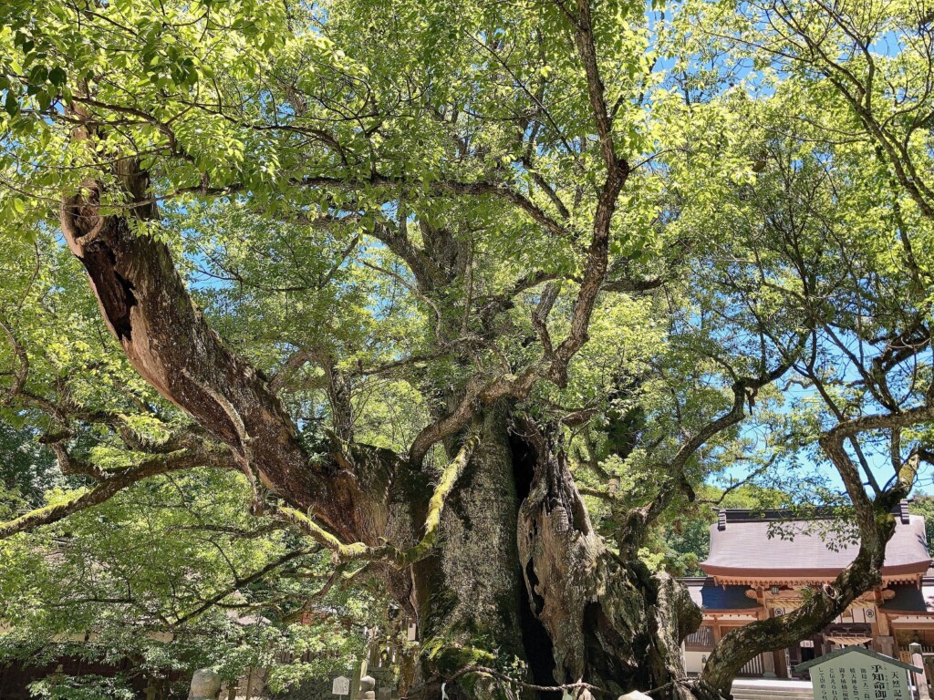 本殿正面には御神木である、樹齢2600年あまりの大楠が鎮座しています。
