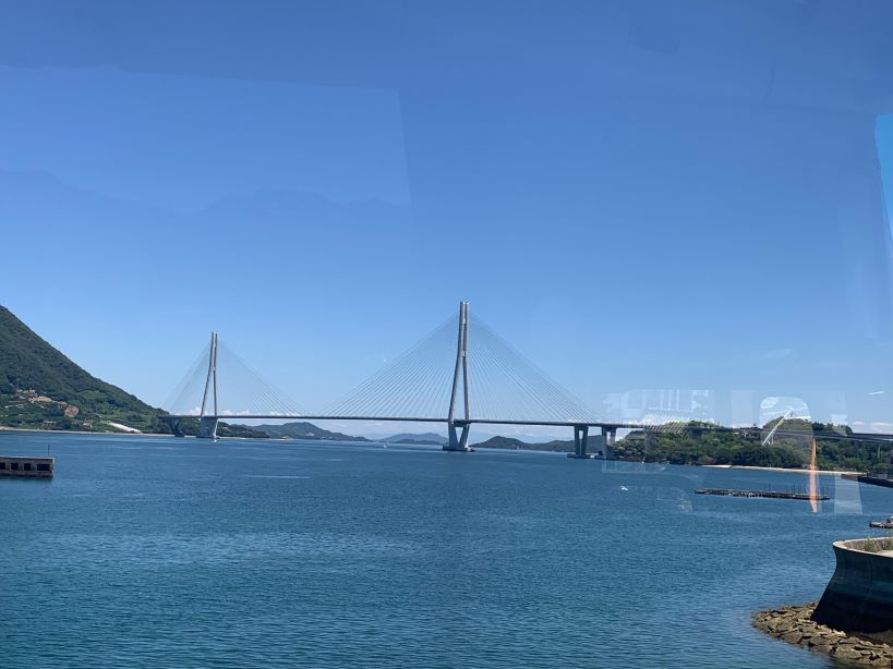 終着点の福山(広島)に向かう途中では、鳥が羽を広げたような外観が印象的で、有名な多々良橋を眺めたり、瀬戸田のレモンを使用したお土産屋さんに立ち寄ったりもしました。