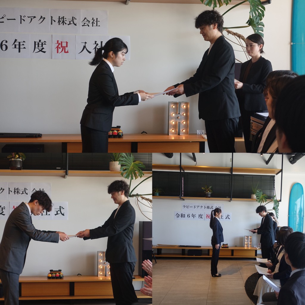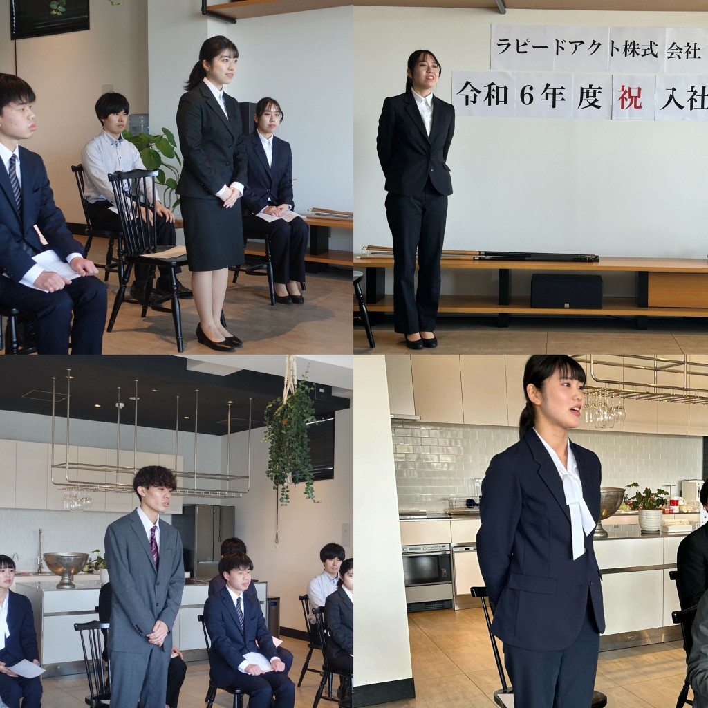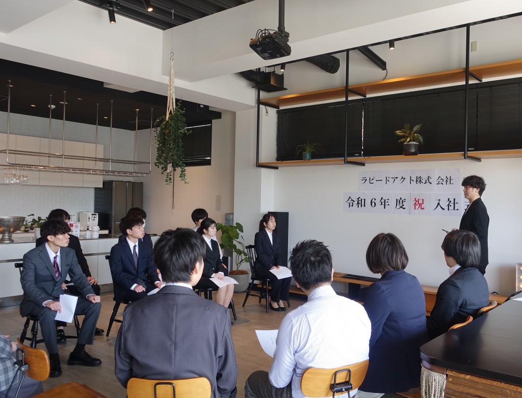 令和6年4月1日 寒さが過ぎ去り春の暖かさが感じられる中、ラピードアクトでは入社式を執り行いました。