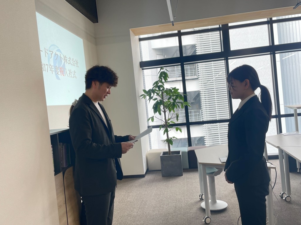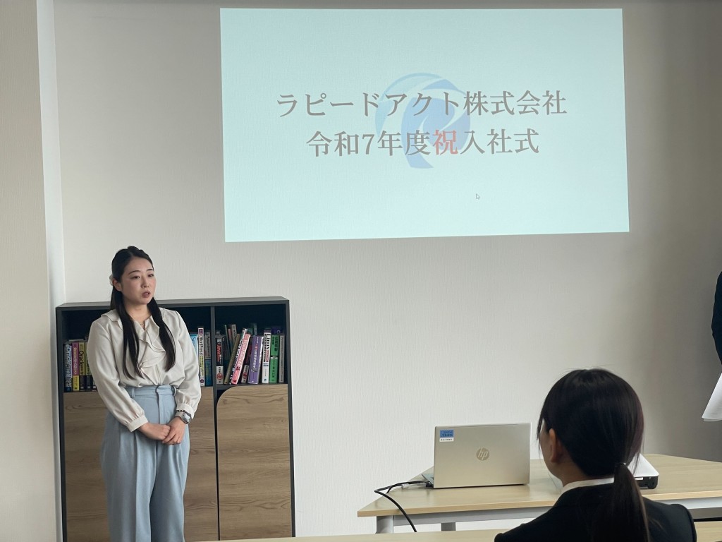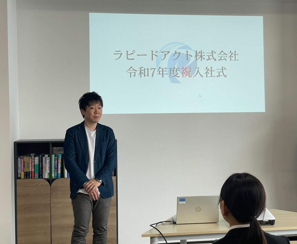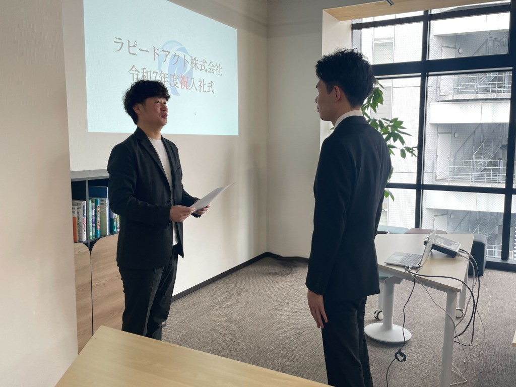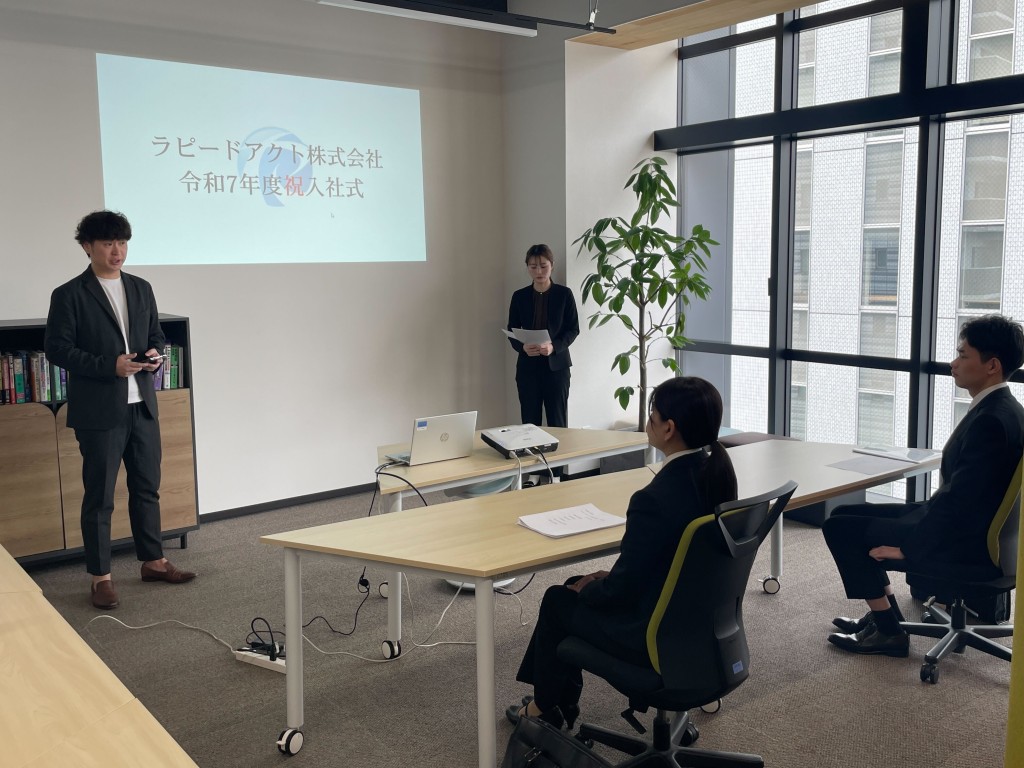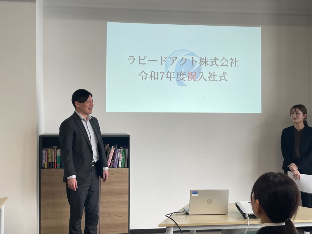 令和7年4月1日 寒さが過ぎ去り春の暖かさが感じられる中、ラピードアクトでは入社式を執り行いました。