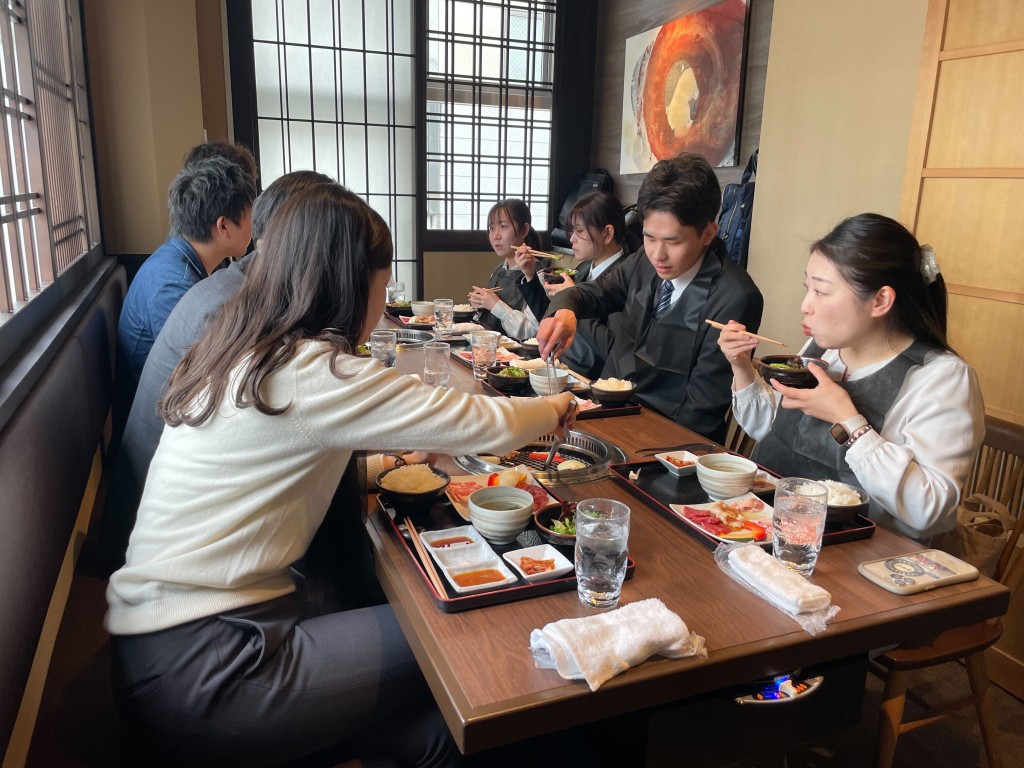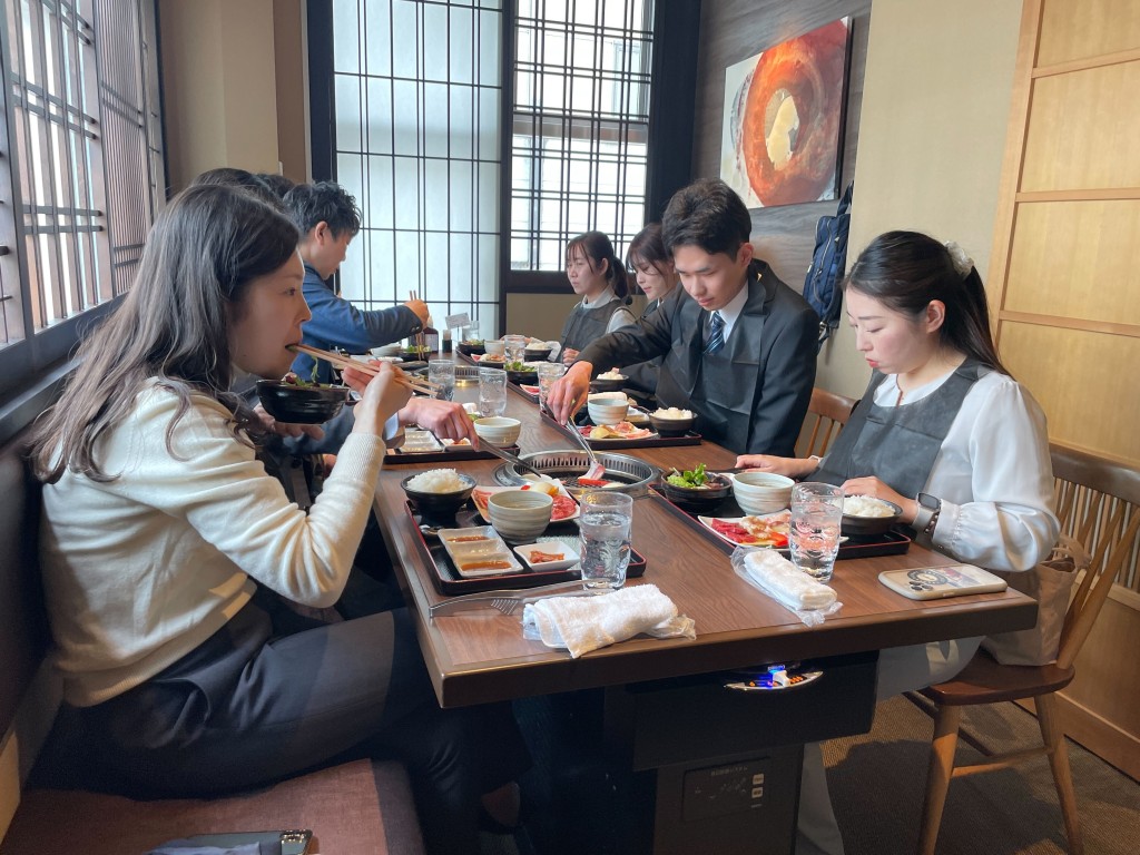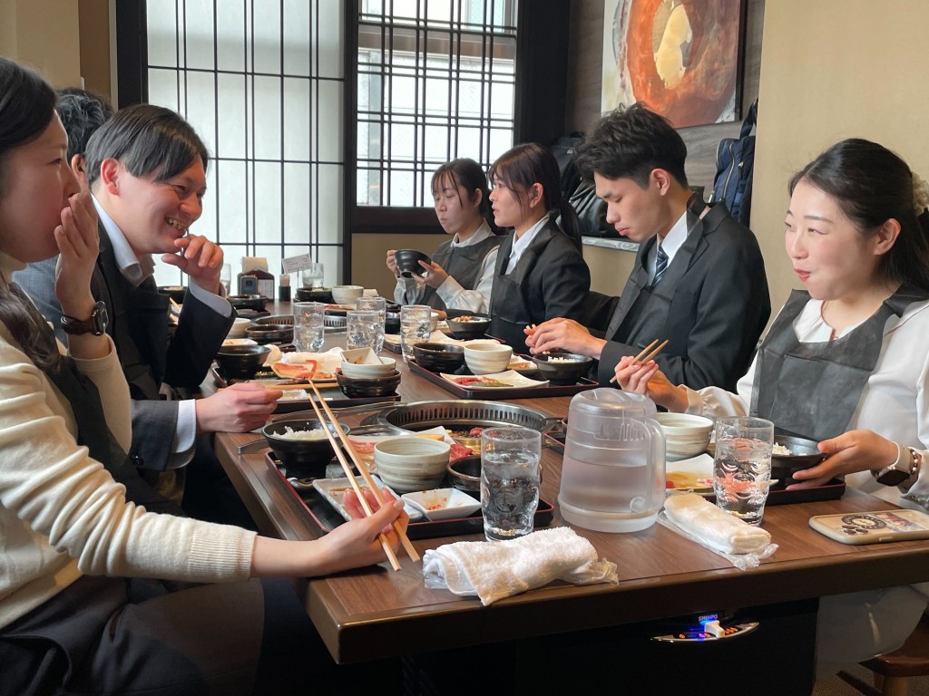 入社式後は新入社員との交流を深めるため、皆でランチに行きました。緊張も少し和らぎ、和やかな雰囲気の中で会話が弾んでいました。