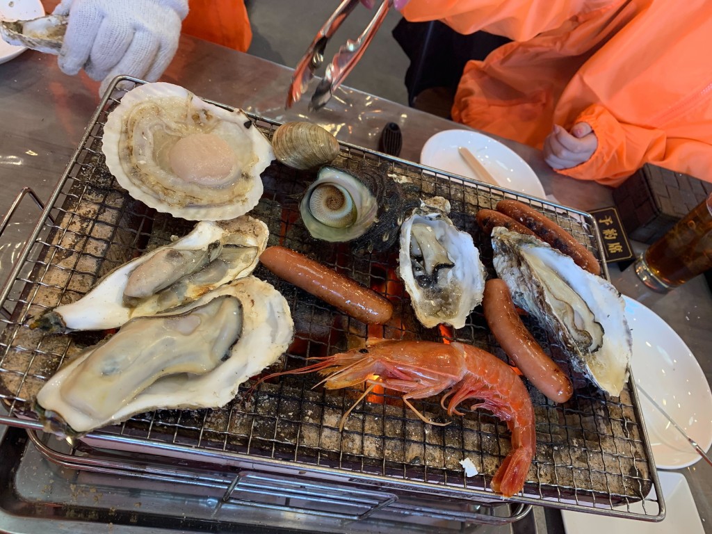 この日は天気に恵まれ、晴れ晴れとした中、牡蠣小屋を満喫することができました。