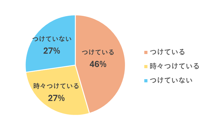 「アクセサリーをつけている」「時々つけている」人が73%占めていることが分かりました。