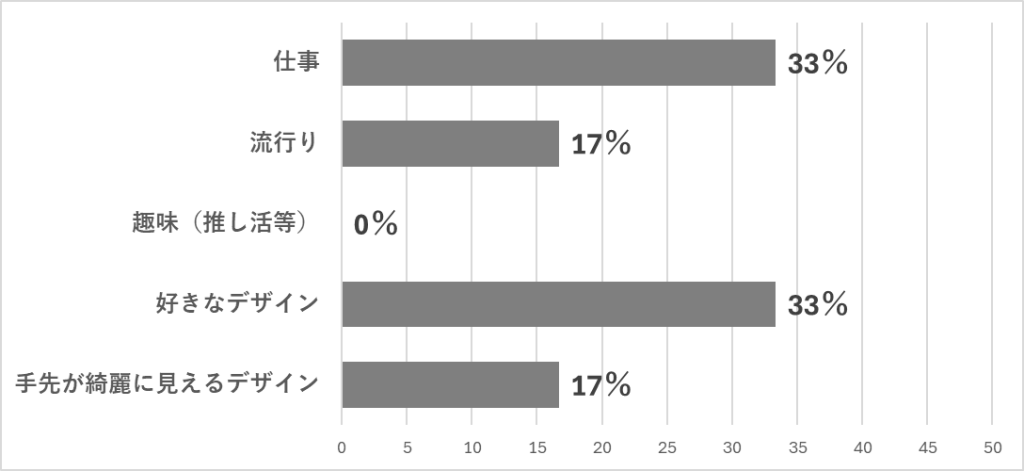 Q6:上記で「している」を選択された方にお聞きします。ネイルのデザインは、なにを重視して選んでいますか?