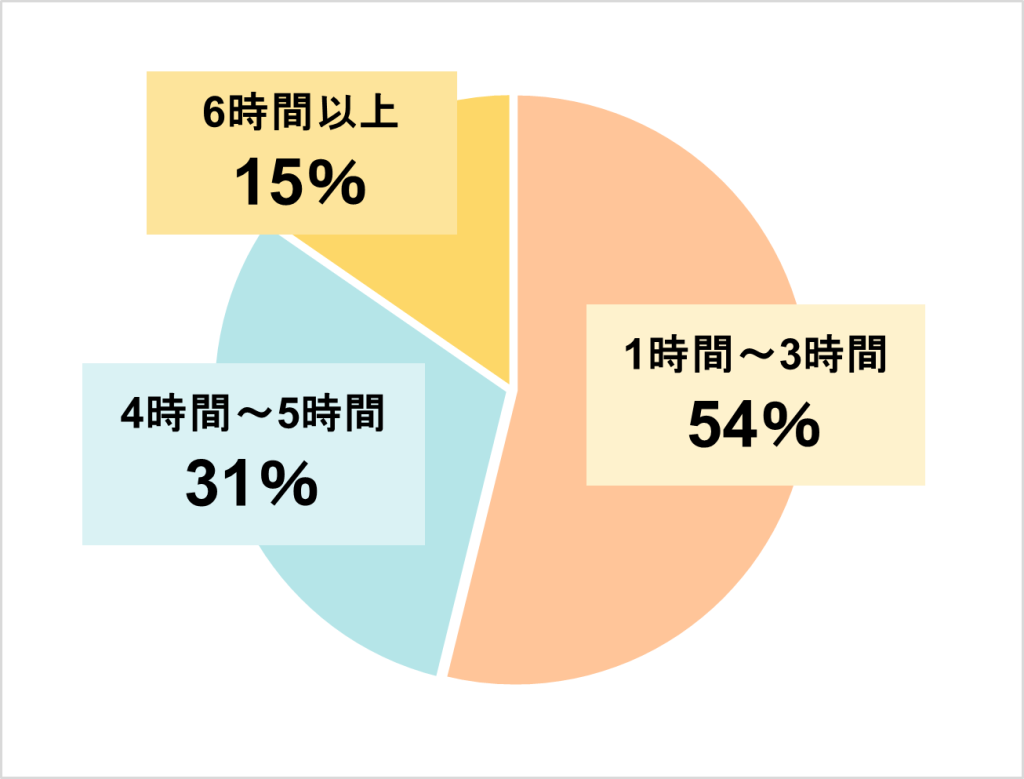 平日の自由時間で最も多かったのは「1時間~3時間」でした。