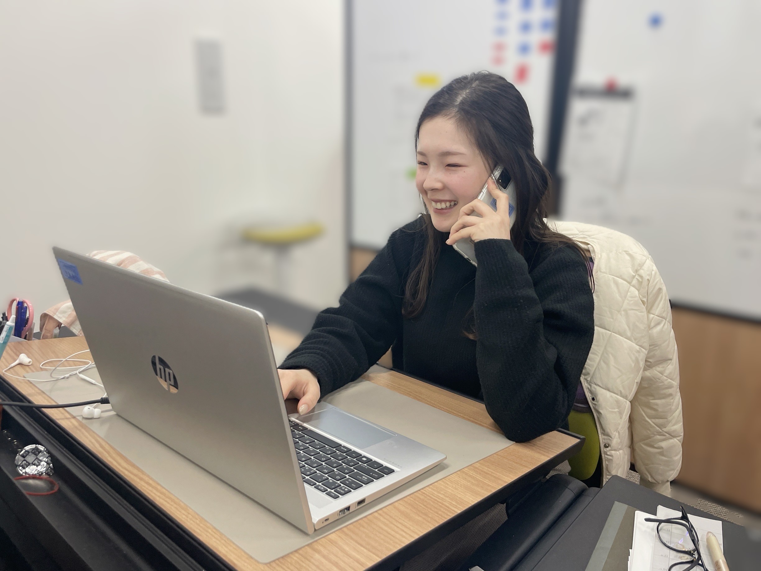 スケジュールの合間に、電話対応や社内の業務も並行して行っています。