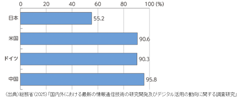 中国(95.8%)、ドイツ(90.3%)、米国(90.6%)の海外企業に比べると、まだ大きな差があります。