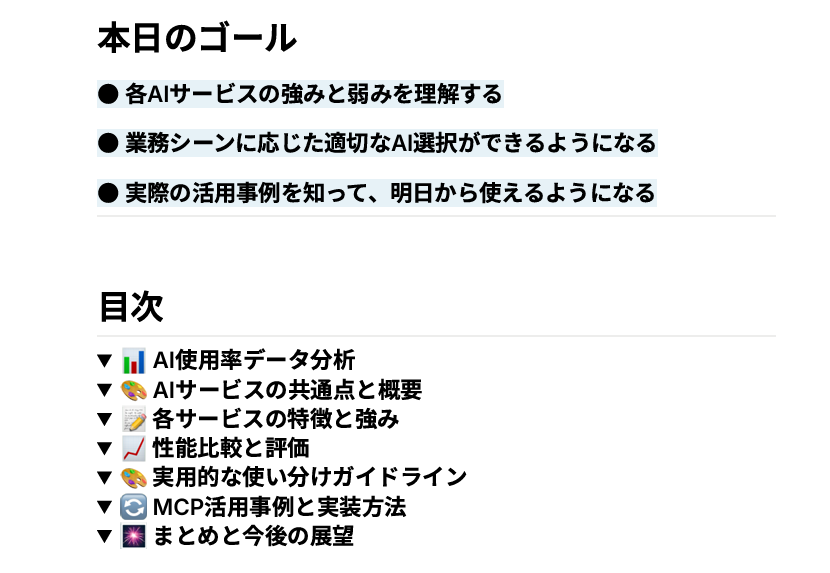 今回のテーマは「AIサービスの最適な使い分けと活用法〜各サービスの特徴を理解して効率的に活用しよう〜」でした。