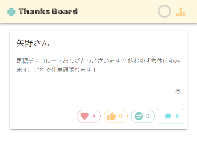 カードだけでなく、リアクションを送ったり、コメントを送るなど独自の機能を付けた、楽しく使えるように工夫されています。