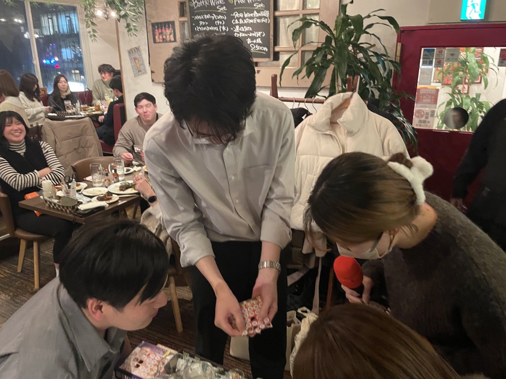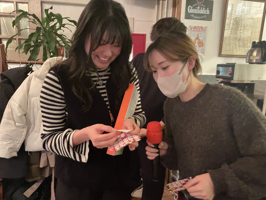 こちらでも会の途中にビンゴ大会を開催し、少人数ならではのリラックスした雰囲気の中、ビンゴカードに目を凝らしながら、和気あいあいとした時間を過ごしました。